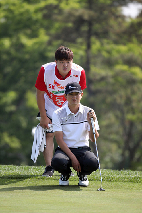 13번홀 퍼팅 라인을 살피는 장동규