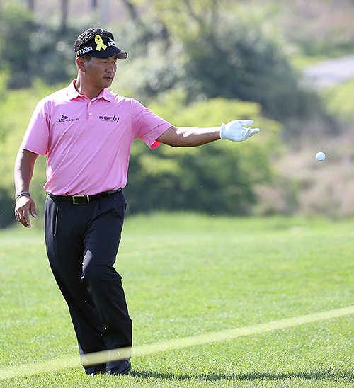 최경주 18번홀 꼬마팬에게 볼을 건네주고 있다