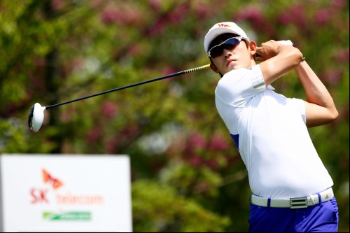 김비오 선수가 10번홀 티샷을 하고 있다.
