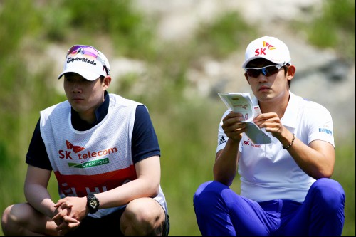 김비오 선수가 12번홀 티샷을 기다리고 있다.