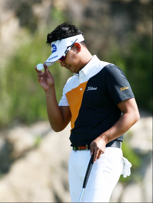 박상현 선수가 2번홀 퍼팅 후 인사하고 있다.