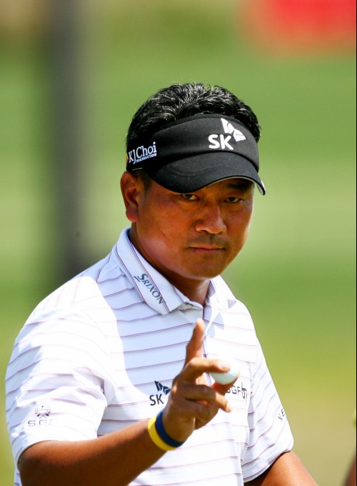최경주 선수가 9번홀 퍼팅 후 인사하고 있다.