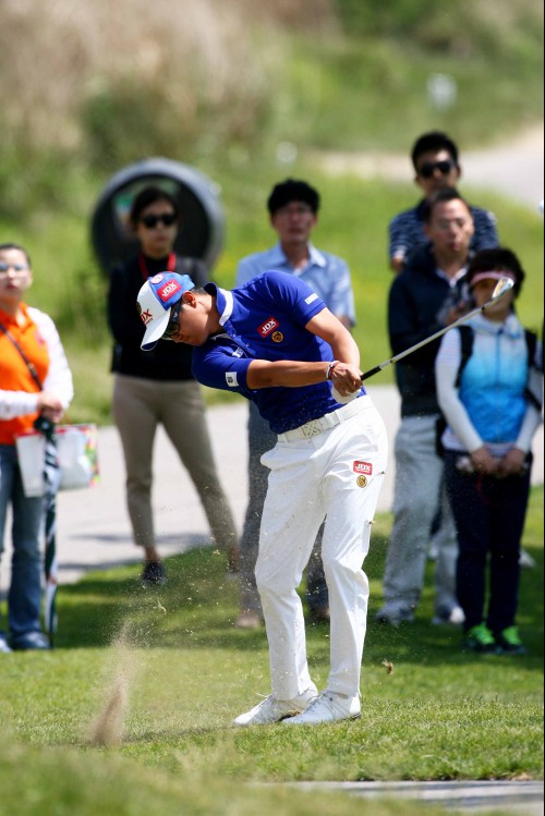 허인회 선수가 10번홀 세컨샷을 하고 있다.