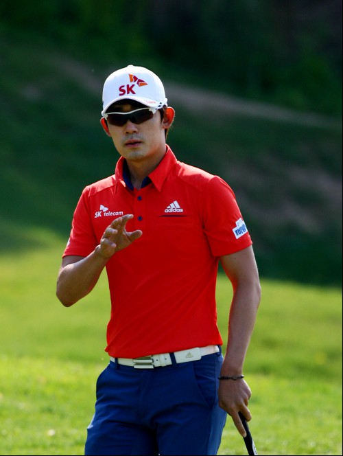 김비오가 2번홀 버디 성공 후 인사하고 있다.