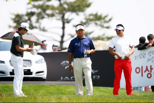 김승혁(좌로부터),최경주 박상현이 12번홀 대기중 담소를 나누고 있다.
