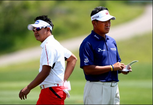 박상현(좌)과 최경주가 11번홀 공략에 고민하고 있다.