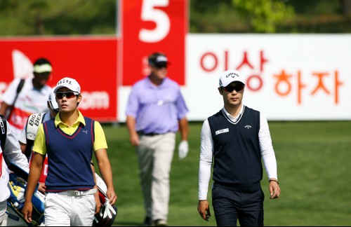 박효원(좌)과 김대현이 5번홀 티샷 후 이동하고 있다.