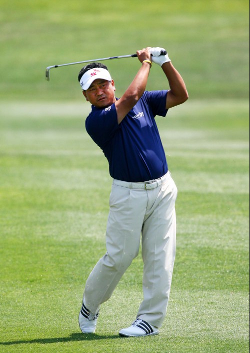 최경주가 10번홀 세컨샷을 하고 있다.