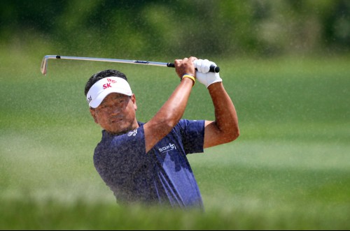 최경주가 11번홀 페어웨이 벙커샷을 하고 있다.