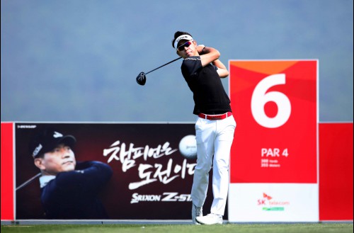 최진호가 6번홀 티샷을 하고 있다.
