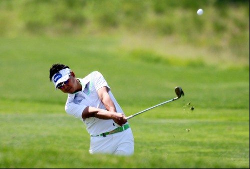 박상현이 4번홀 세컨샷을 하고 있다.