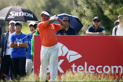 최경주가 4번홀 티샷을 하고 있다.