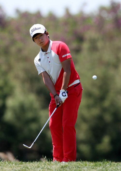 김승혁이 마지막라운드에서 7번홀 어프로치샷을 하고 있다.
