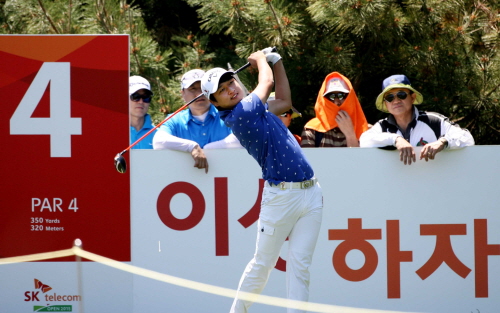 왕정훈이 마지막라운드에서 4번홀 티샷을 하고 있다.