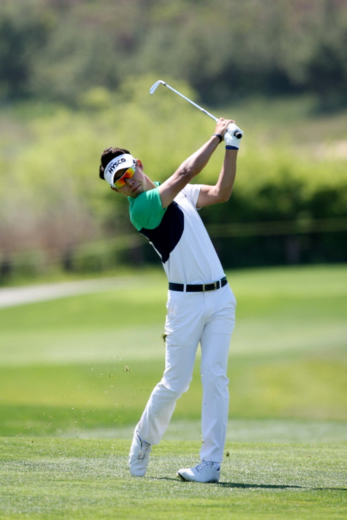 최진호가 마지막라운드에서 2번홀 세컨샷을 하고 있다.