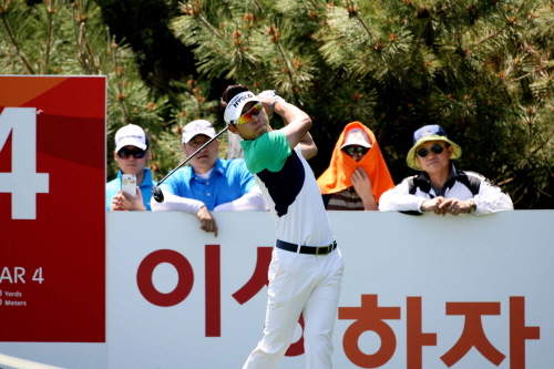 최진호가 마지막라운드에서 4번홀 티샷을 하고 있다.