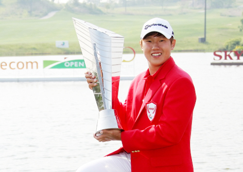 이상희가 마지막라운드에서 우승트로피를 들고 포즈를 취하고 있다.