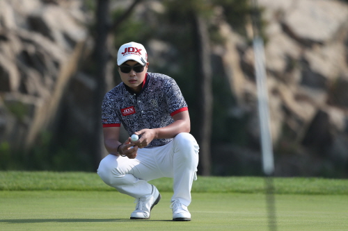 10번홀 그린 퍼팅 라인을 살피는 이형준프로