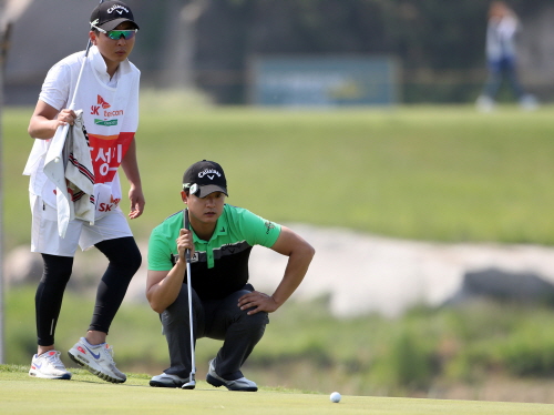 조성민 3번홀 퍼팅 라인을 살피는