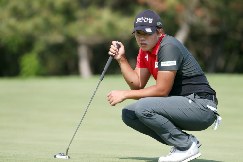 15번홀 퍼팅 라인을 살피는 이상희프로