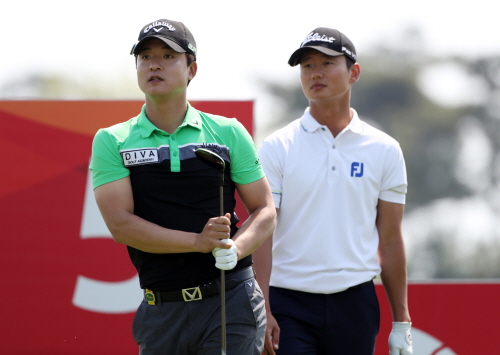 5번홀 티샷후 볼의 방향을 바라보는 조성민프로