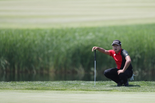 3번홀 그린 퍼팅 라인을 살피는 김승혁프로
