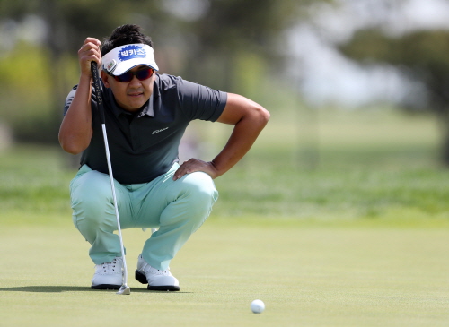 1번홀 퍼팅 라인을 살피는 박상현프로