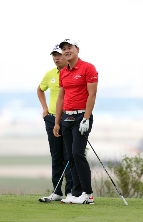 3번홀 드라이버 티샷후 볼의 방향을 살피는 김준성