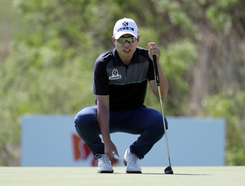 8번홀 퍼팅 라인을 살피는 김경태