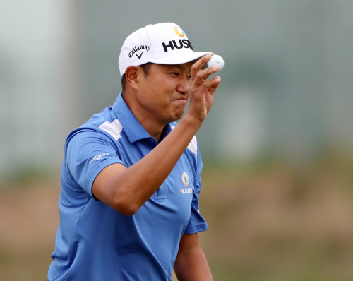 7번홀 그린 버디퍼팅 성공후 갤러리에게 인사하는 최이삭