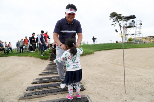 9번홀 홀아웃후 딸시연과 포옹하고 있는 류현우
