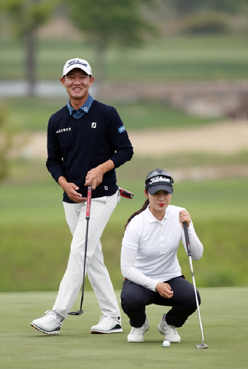 재능 나눔 행복라운드 이벤트-18번홀 퍼팅 라인을 살피는 권성열