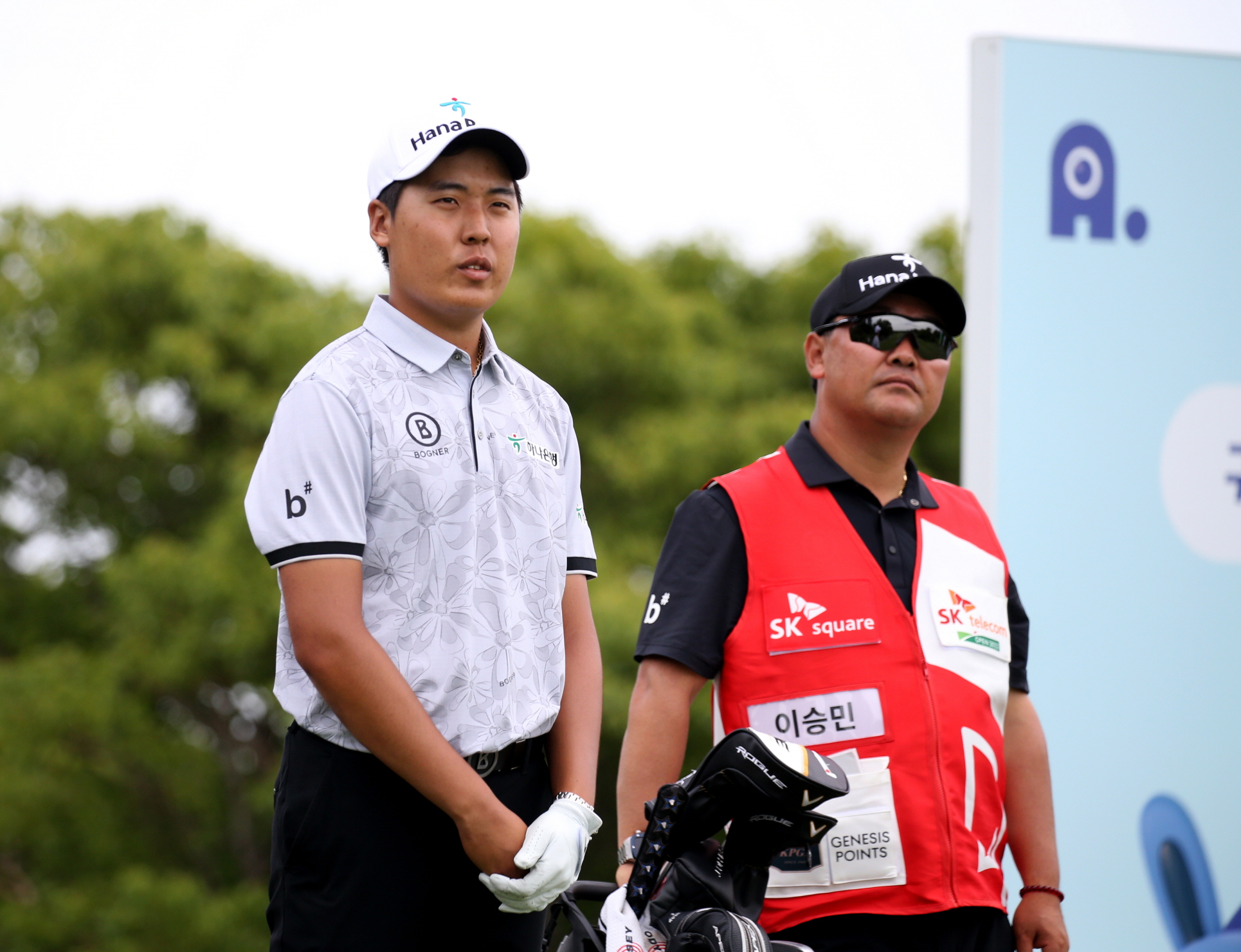 이승민 8번홀 티그라운드 볼의 방향 살피는