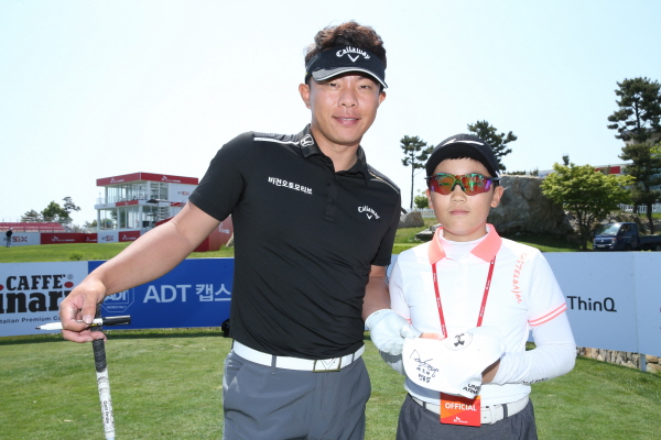 아름다운 동행에 참가한 아이와 기념 사진포즈를 취하는 맹동섭