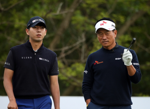 국가대표 김동은선수와 공략지점을 바라보는 최경주프로