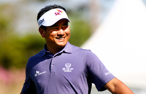 최경주 1번홀 티샷후 페어웨이로 이동하는 모습