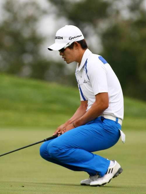 김비오 2번홀 버디퍼팅 실패후 안타까워 하는 모습