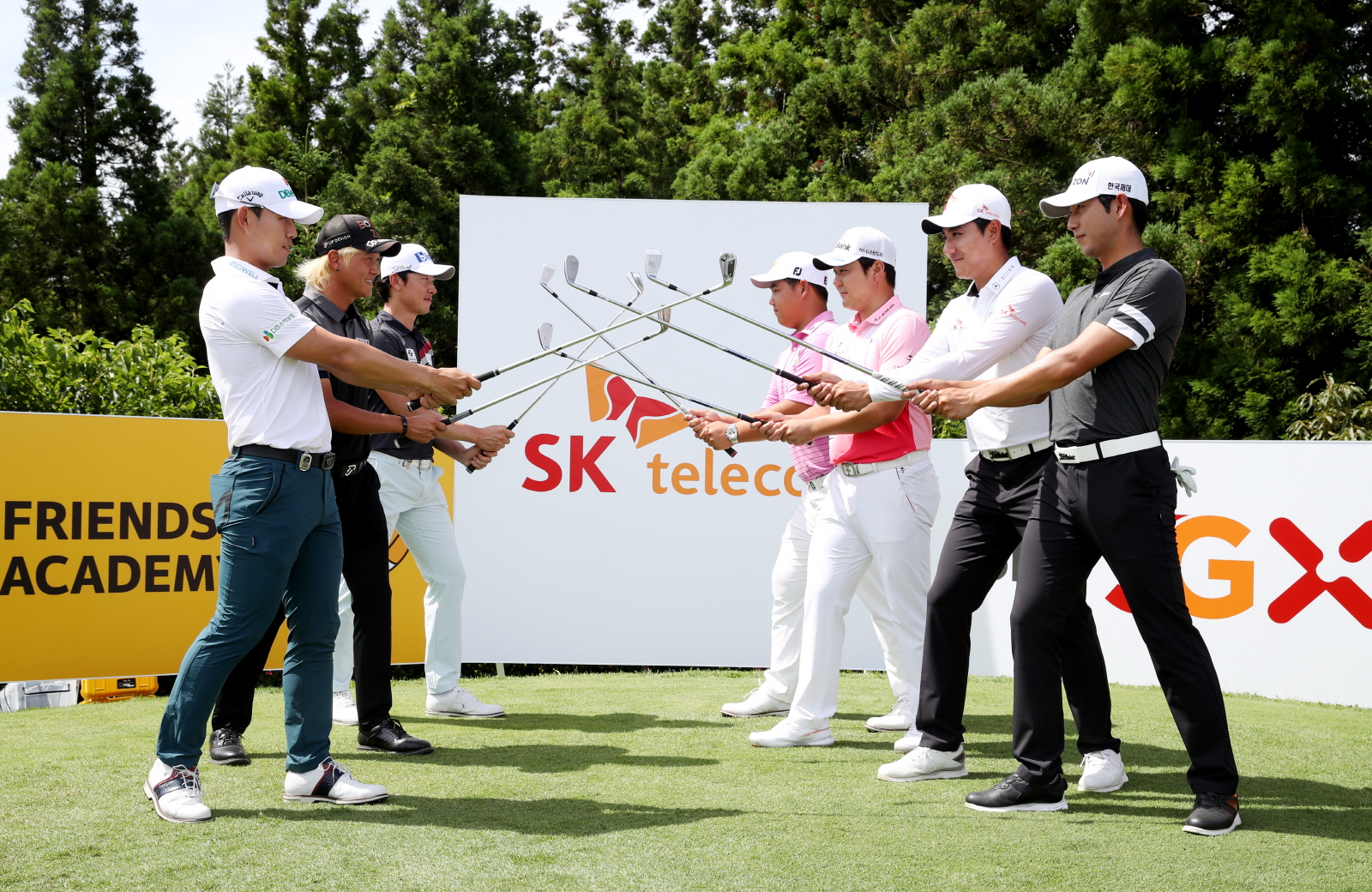 SK텔레콤 오픈 2021 포토콜에서 대결 구도 포즈를 취한 선수들