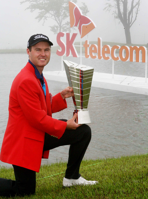 우승 트로피 들고 포즈 취하는 매슈 그리핀