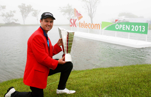 우승 트로피 들고 포즈 취하는 매슈 그리핀