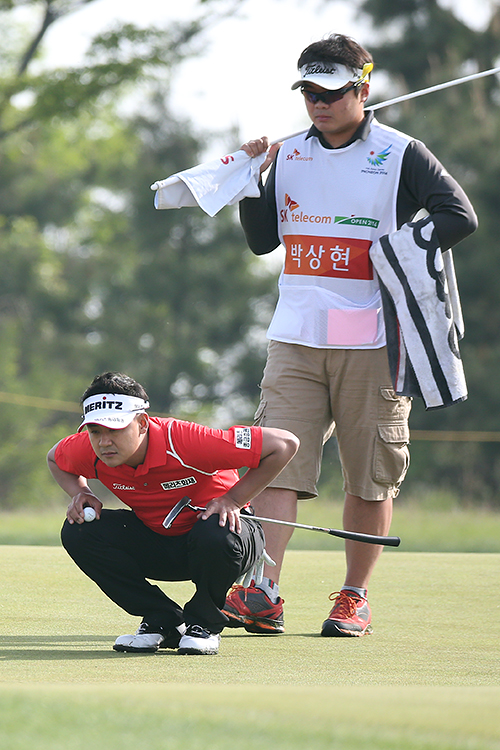 박상현 15번홀 그린에서 퍼팅라인을 살피고 있다