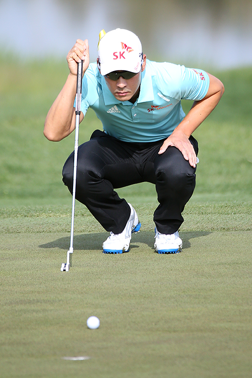 홍순상 15번홀 그린에서 퍼팅라인 살피기