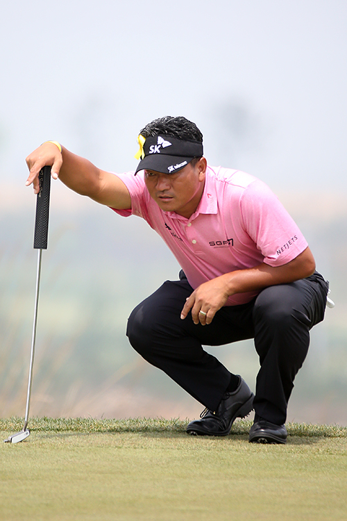 최경주 6번홀 퍼팅라인 살피기